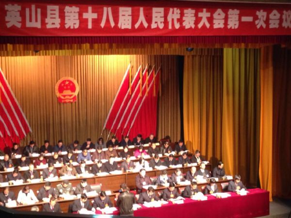 本圖為:公司董事長徐偉參加英山十八屆人大一次會議在主席臺就坐